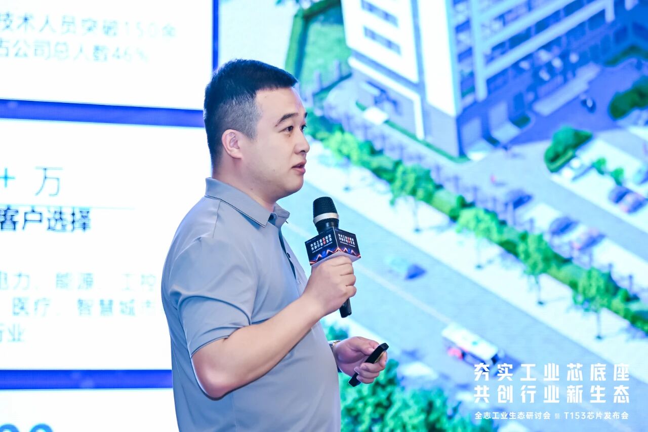 会议最后,全志科技方案运营副总裁朱振华以《全志t153芯片发布:打造可靠工业芯》为题,以工业芯片产品布局介绍为引,正式发布全志工业2.0战略下的新品 t153芯片。全志t153的推出将进一步拓展全志在工业领域的产品生态布局,赋能更丰富的终端形态,为构建坚实、智能的工业底座注入全新动力。