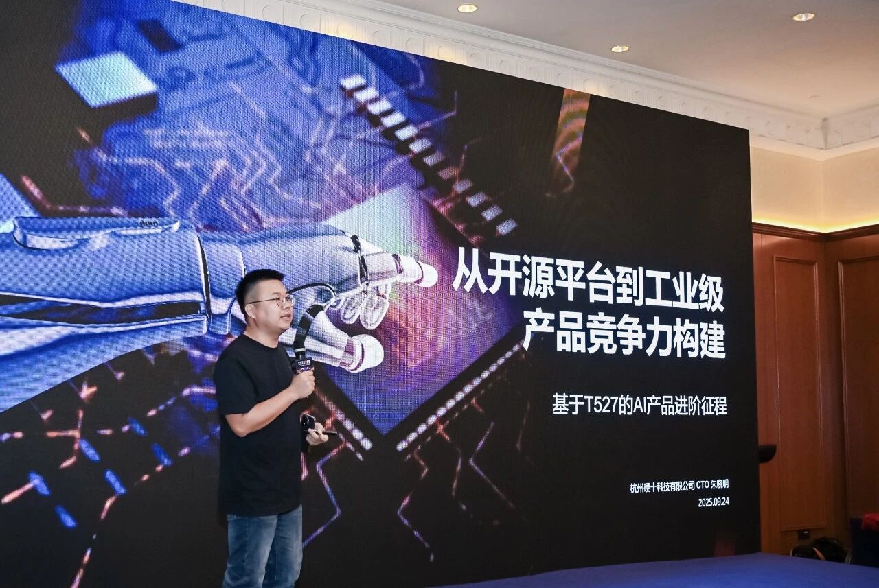 杭州硬十科技有限公司cto朱晓明 以《基于全志t527的机器人和ai产品进阶征程》为题,展现了由t527开源硬件开发板到边缘算力网关、工业清洁机器人、无人机智能吊舱等工业人工智能应用产品落地的路径。