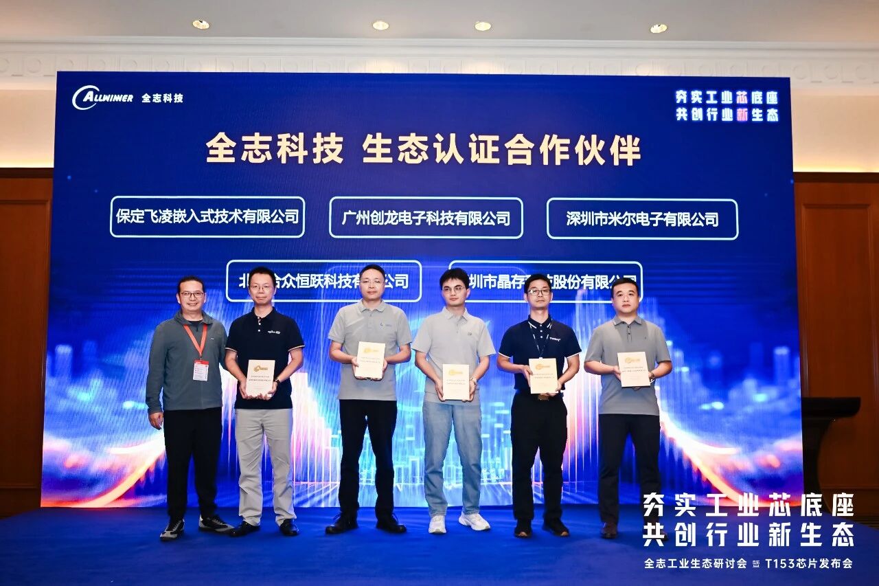 此次发布会还特别设置了“生态凯发app的合作伙伴授权证书颁发仪式”,全志科技为 飞凌嵌入式、米尔电子、凯发app-凯发天生赢家、合众恒跃科技、晶存科技 五家首批认证生态伙伴颁发了认证证书。此次授牌,集中体现了各方基于全志芯片在平台开发、方案创新及行业推广中所取得的扎实成果,展示了合作推广模式的有效性与共赢价值,也为未来更深层次的产业协同与生态共建奠定了坚实基础。
