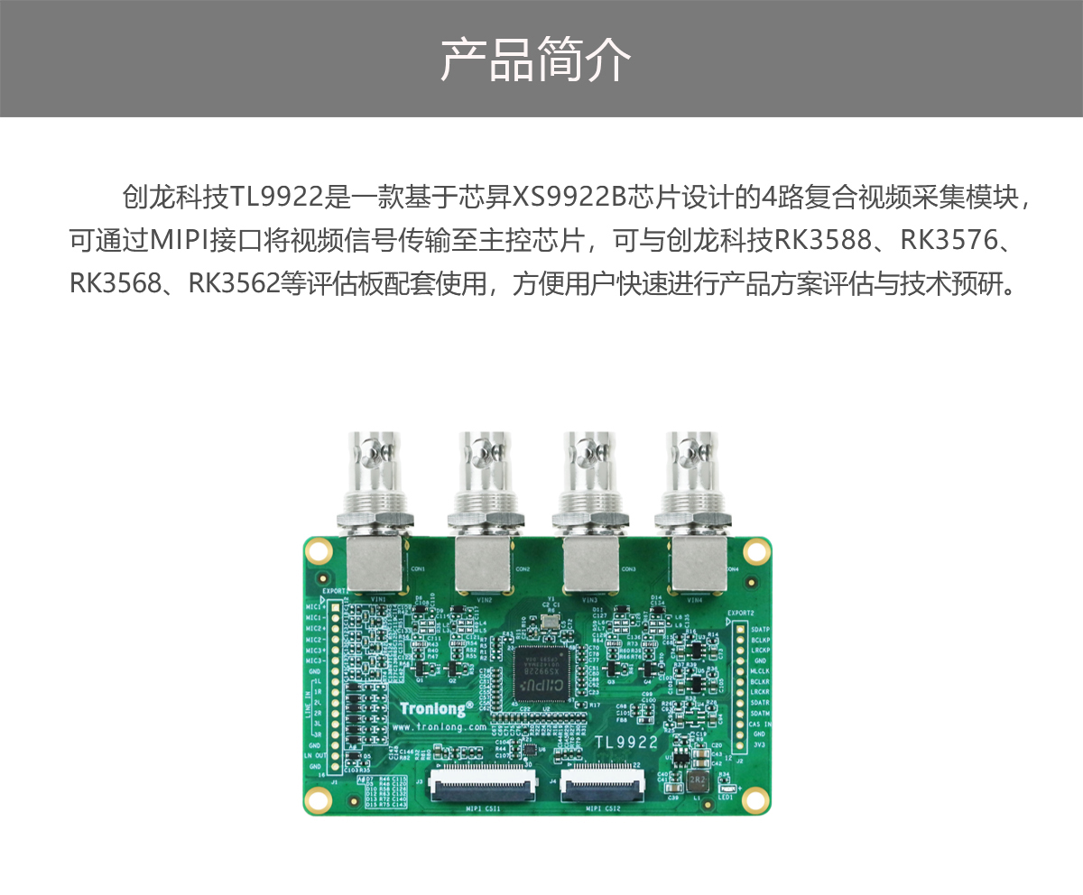 >凯发天生赢家的产品中心 > 拓展模块 > 音视频模块 > 4路ahd转mipi视频采集模块